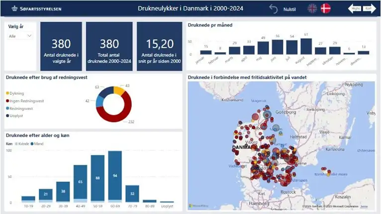 - Med den nye visualisering af data får alle et tydeligere billede af de tendenser, vi ser i forbindelse med drukneulykker, og et sammenligningsgrundlag på tværs af årstal. Nu kan vi også historisk vise, hvordan brugen af redningsvest er i forbindelse med drukneulykker, siger han.