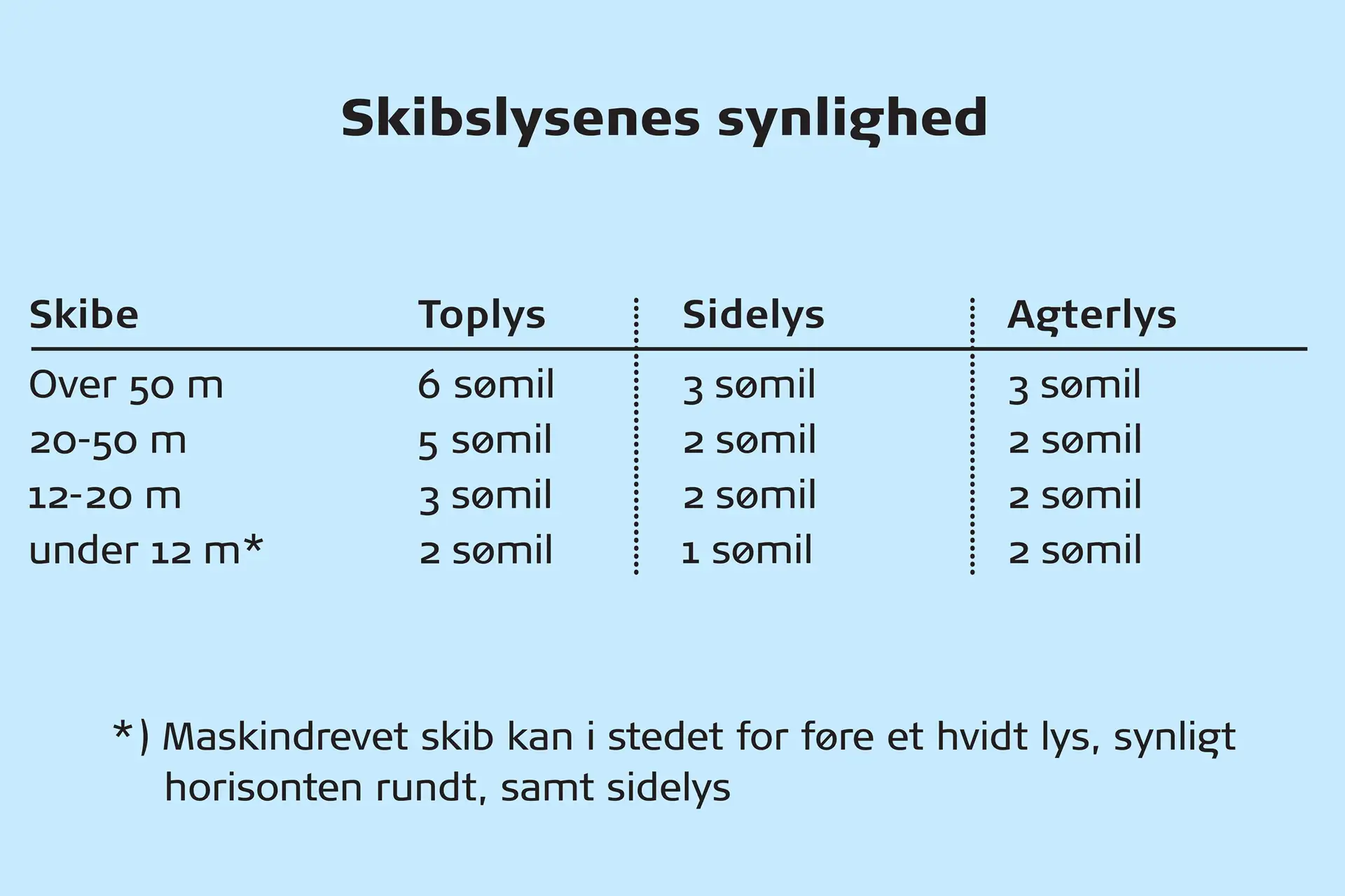 - De internationale søvejsregler, som gælder for alle skibsstørrelser, på alle have og i alle farvande, der har forbindelse med havene.
